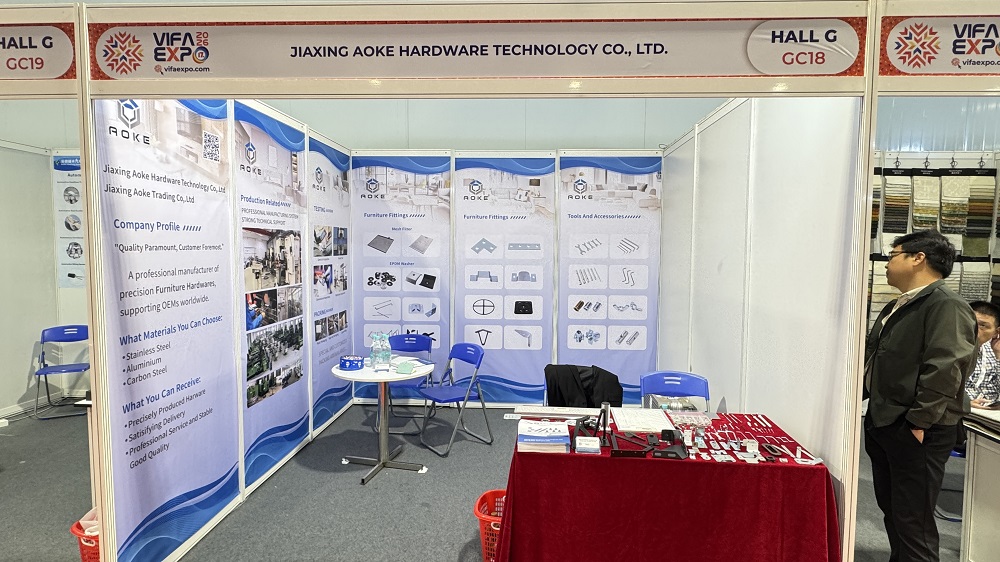 Jiaxing Aoke showcased its core products, including stainless steel furniture hardware fittings and high-quality fasteners. With our stable materials and meticulous craftsmanship, we attracted numerous buyers and manufacturers to stop by for discussions.