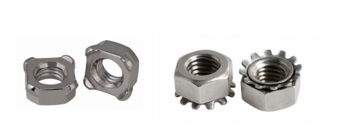 3. Welded nuts: Welded nuts are divided into square and hexagonal types. These nuts have several welding points on the underside; after installation, they are welded in place to achieve a very secure fastening.